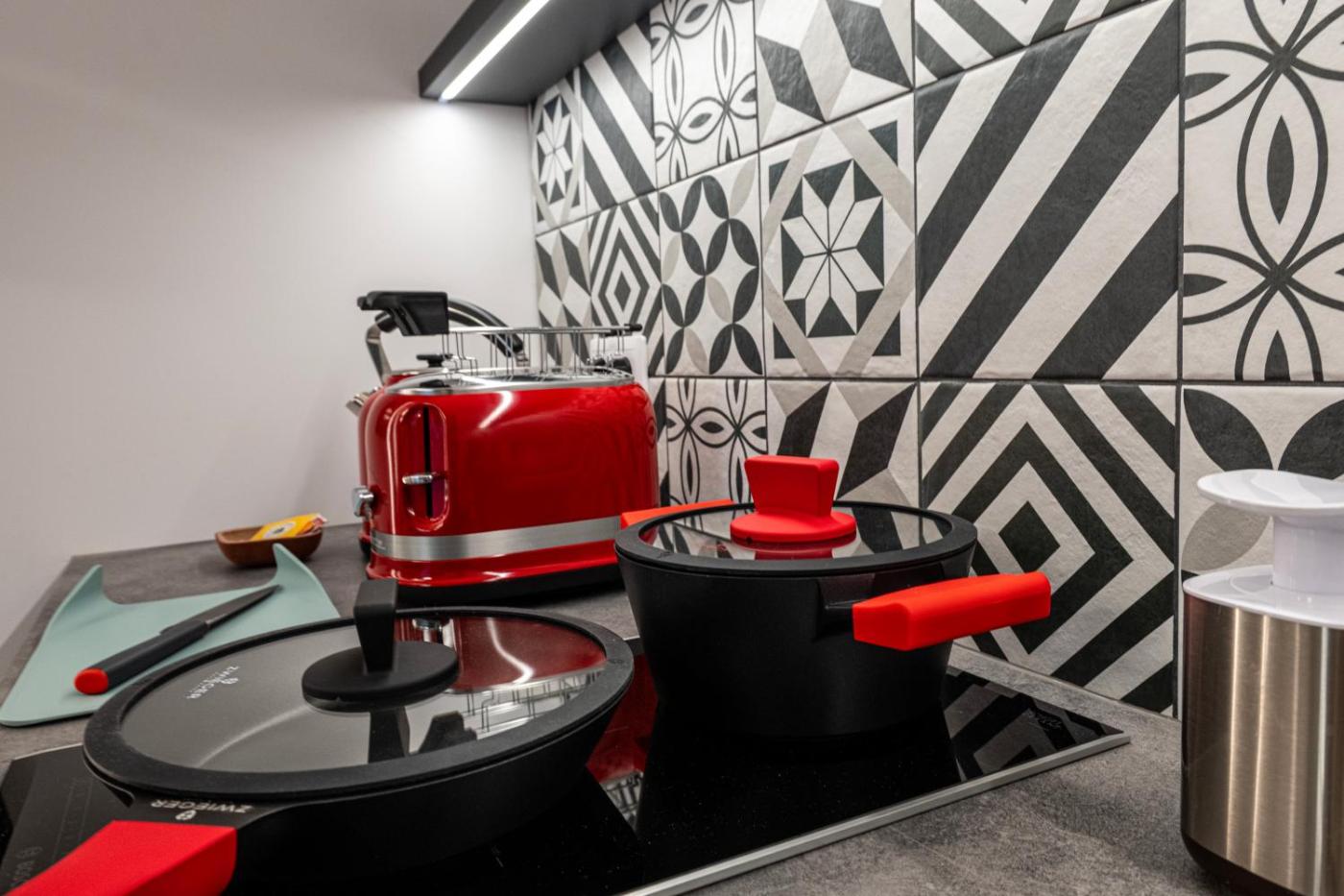 Oferta apartamentu obejmuje sypialnię (1), salon, kuchnię z pełnym wyposażeniem, w tym lodówką i ekspresem do kawy, a także łazienkę (1) z prysznicem oraz bezpłatnym zestawem kosmetyków. W apartamencie zapewniono ręczniki i pościel.