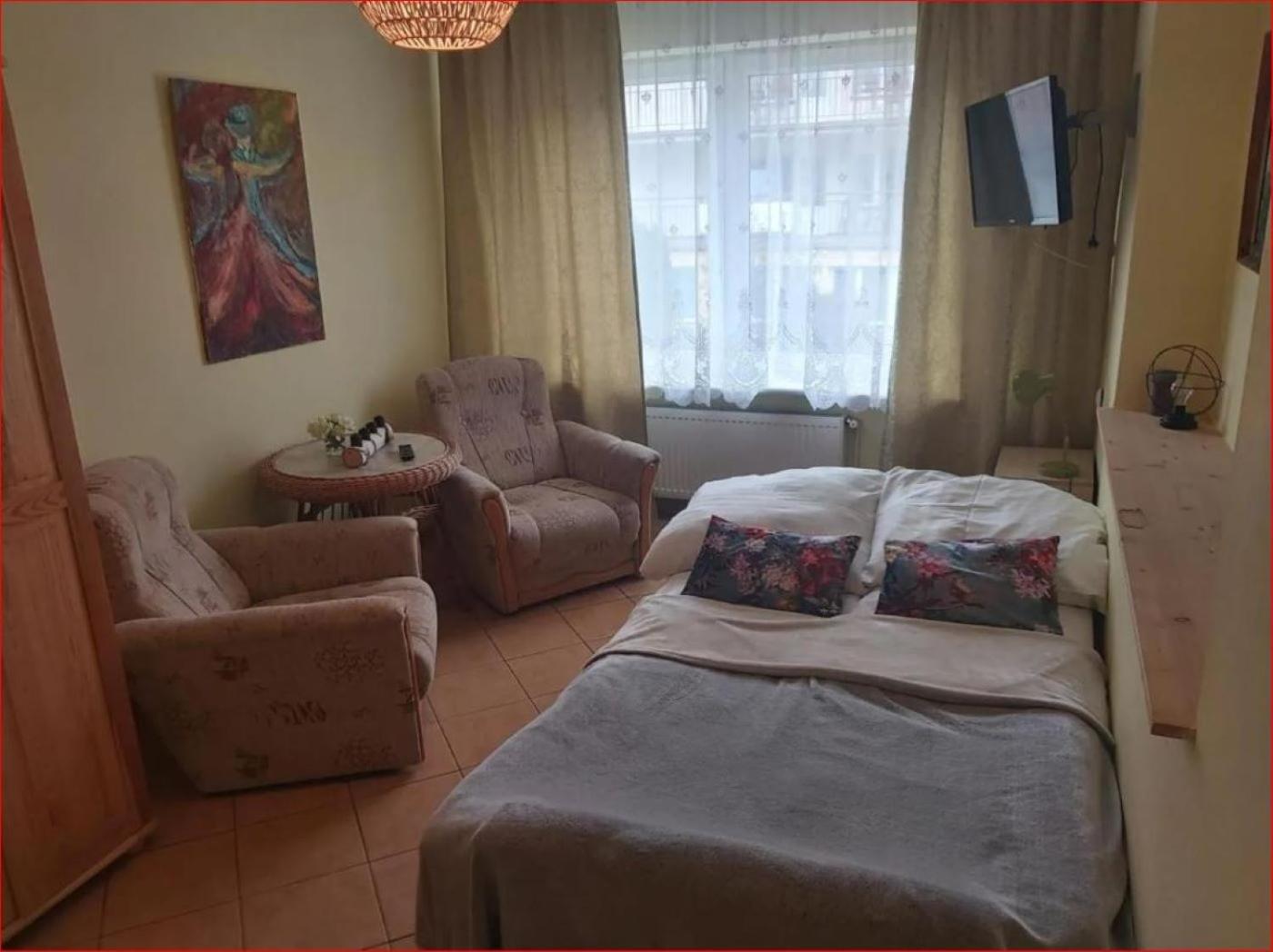 Pokój dwuosobowy z prywatną łazienką. The double room features a wardrobe, as well as a private bathroom boasting a shower. This double room offers a flat-screen TV. The unit has 1 bed. Pokój Dwuosobowy - 2 osobowy. Powierzchnia pokoju ok.: 25 mkw. ;
