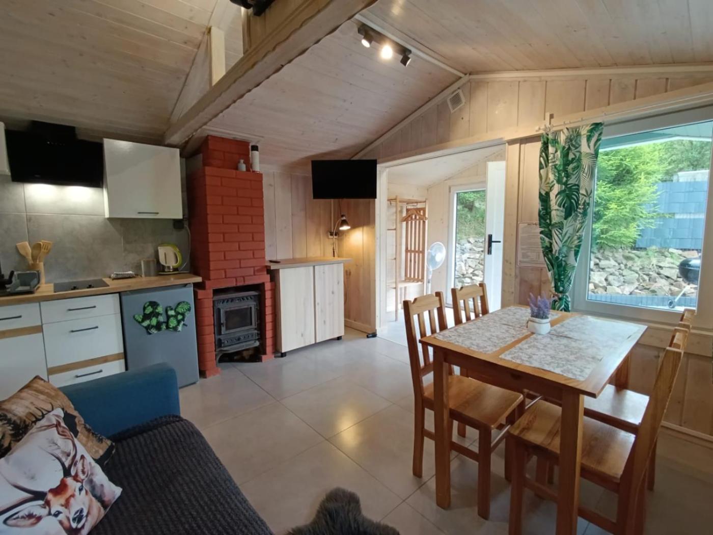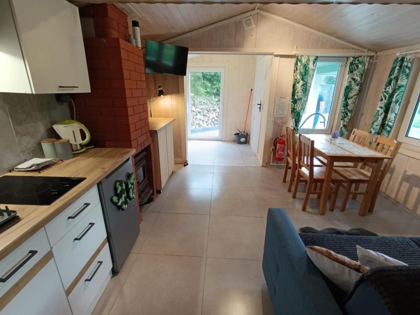 Domek z 1 sypialnią. This chalet provides a fireplace. Featuring a private entrance, this chalet comprises 1 living room, 1 separate bedroom and 1 bathroom with a shower. Guests will find a stovetop, a refrigerator, kitchenware and a tea and coffee maker in the fully equipped kitchenette. The chalet also provides guests with a barbecue. A seating area with a flat-screen TV, a dining area and a terrace are featured in this chalet. The unit offers 2 beds. Domek - 4 osobowy. Powierzchnia pokoju ok.: 32 mkw.